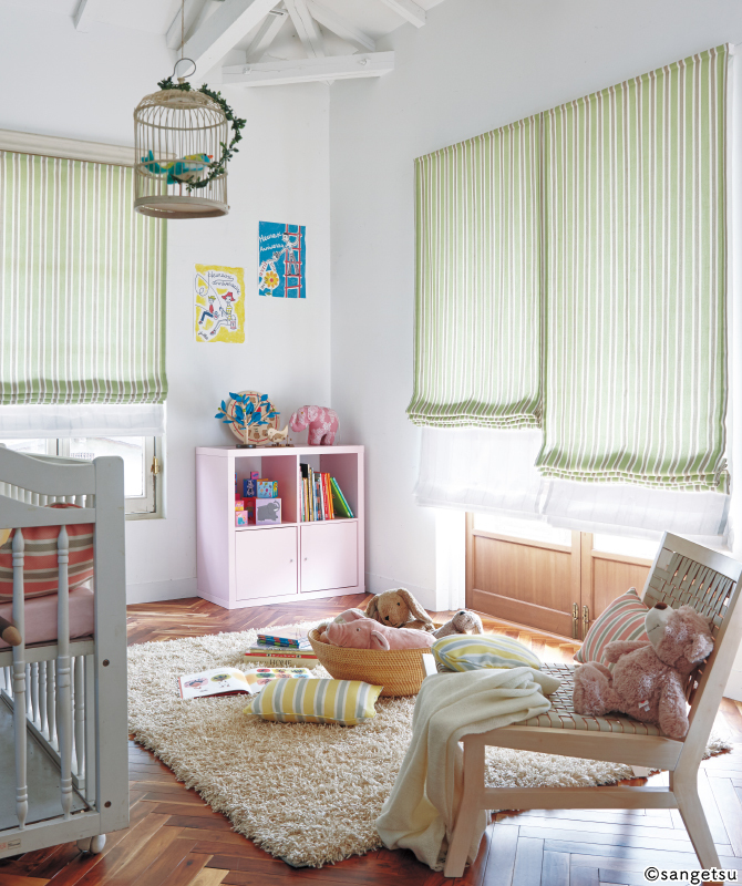 ドレープとのコーディネートも楽しめる意匠糸使いの可愛らしいレース。
