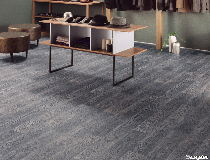 メタリック塗装を施したスタイリッシュなオーク柄。施設~店舗にまで幅広くお使いいただけます。