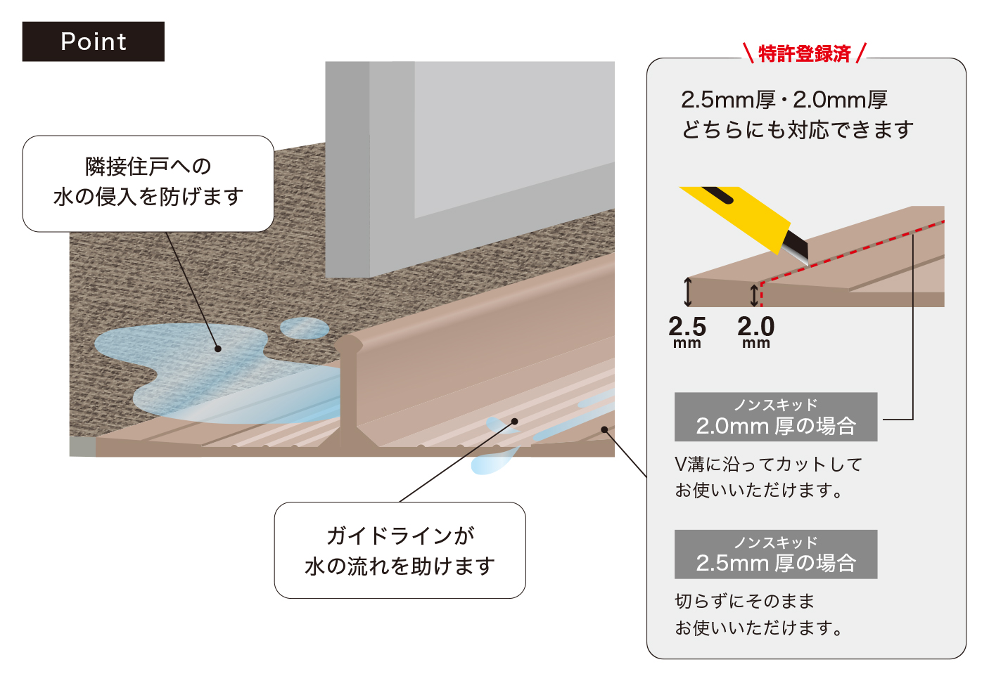 バルコニー・ベランダの仕切り材。隣接住戸への水の侵入を防げます。