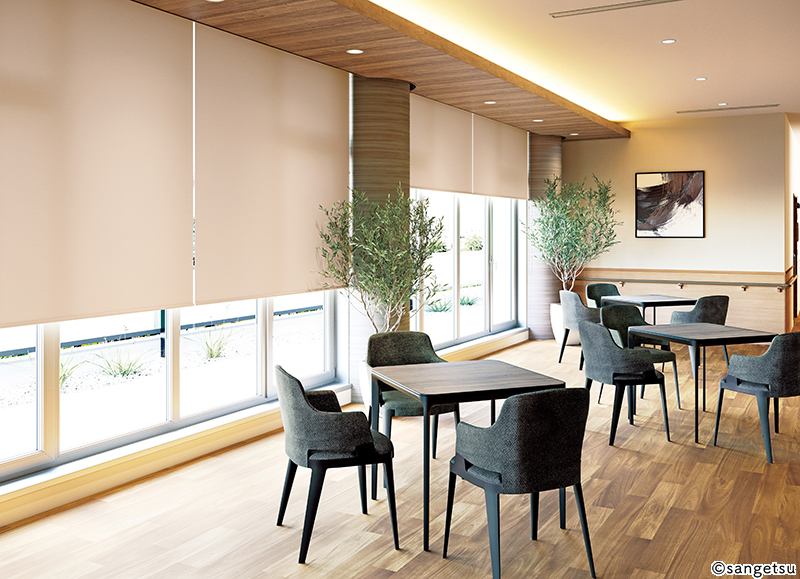 繊維上の特定のウイルスを減少させる抗ウイルス加工を施したロールスクリーンです。多くの人が集う場所や医療施設、高齢者施設などにもおすすめの商品です。落ち着いたカラーは高級感ある空間にもマッチします。