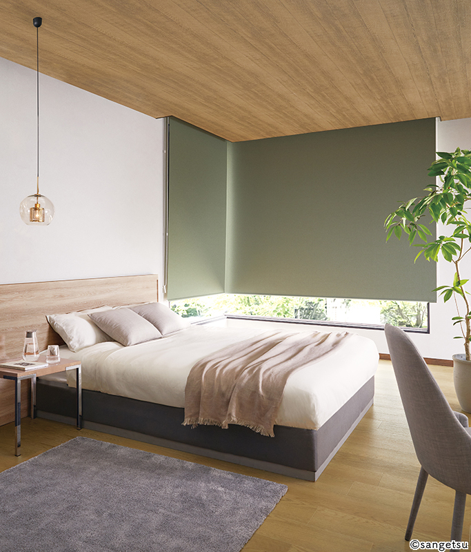 ざっくりとしたナチュラルな生地、また、トレンドを感じさせるニュアンスあるカラーが魅力の遮光スクリーンです。巾2,700㎜まで製作可能な広幅サイズです