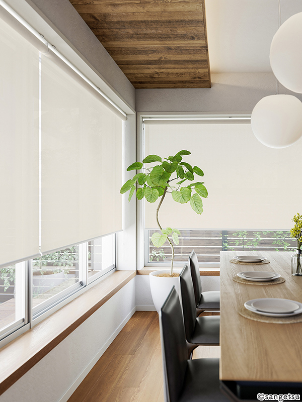 ガーゼのようなやわらかな表情のシアーです。シアーの中では透けにくい遮像効果のあるスクリーンで、光を取り込みながら外からの視線を程よく遮ってくれます。