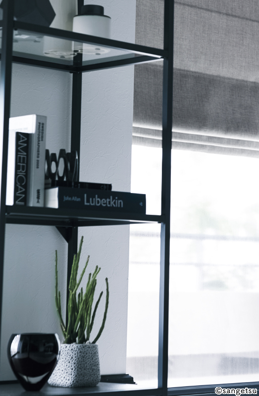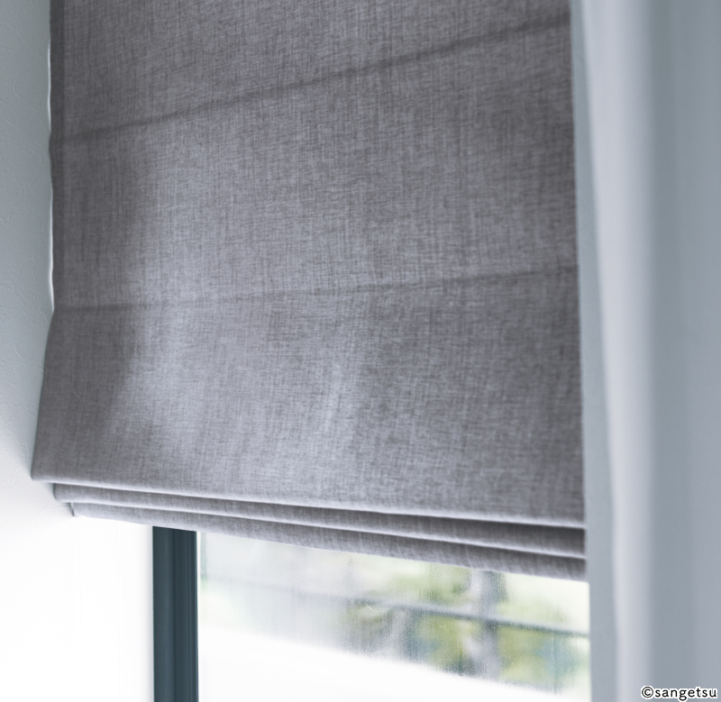 金属のようなメタリック感が特徴の無地。ライトプリーツ加工を施すのがおすすめです。