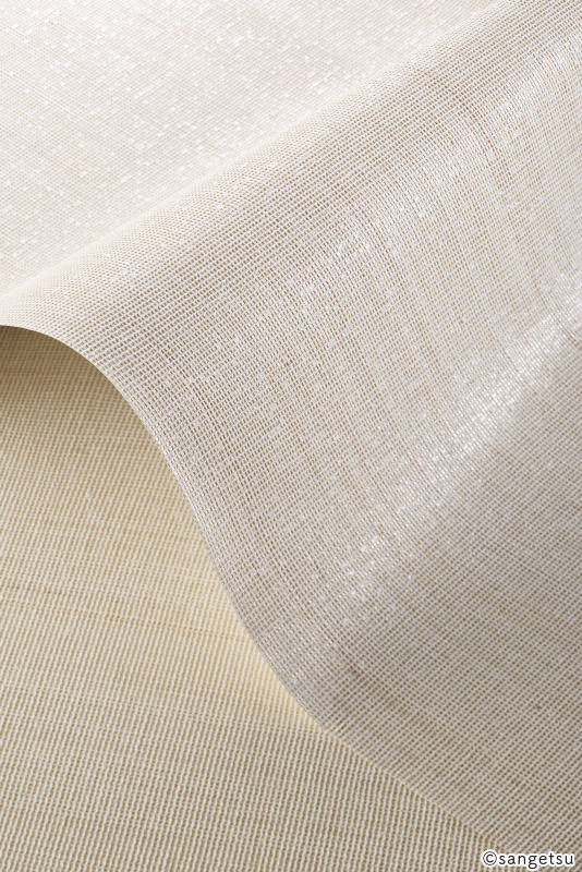 アバカ(マニラ麻)を使用した織物をメタリック紙で裏打ちし染色したものです。光によって色の深みが変化します。