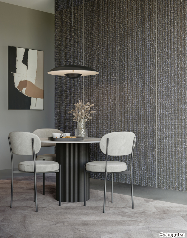 ファッションテキスタイルの産地である尾州で織られた生地を使用した織物壁紙です。