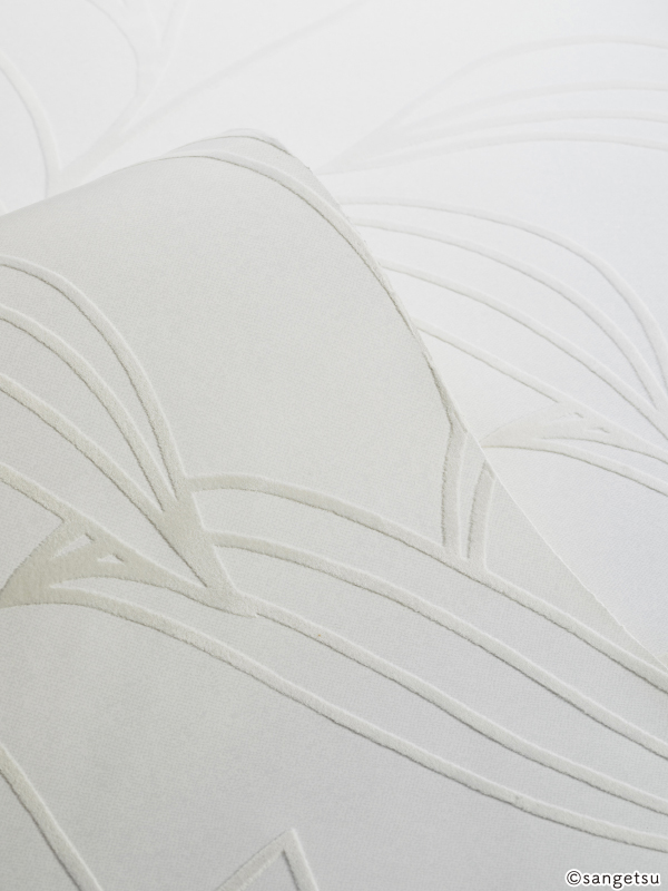美しく重なり合うヤナギの葉をモチーフとしたデザインを、フロック加工で表現しました。