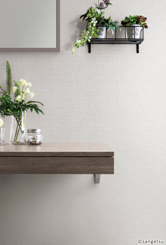 立体感のあるライトグレーのモダンなタイル柄。リビングや水まわりのアクセントにおすすめです。