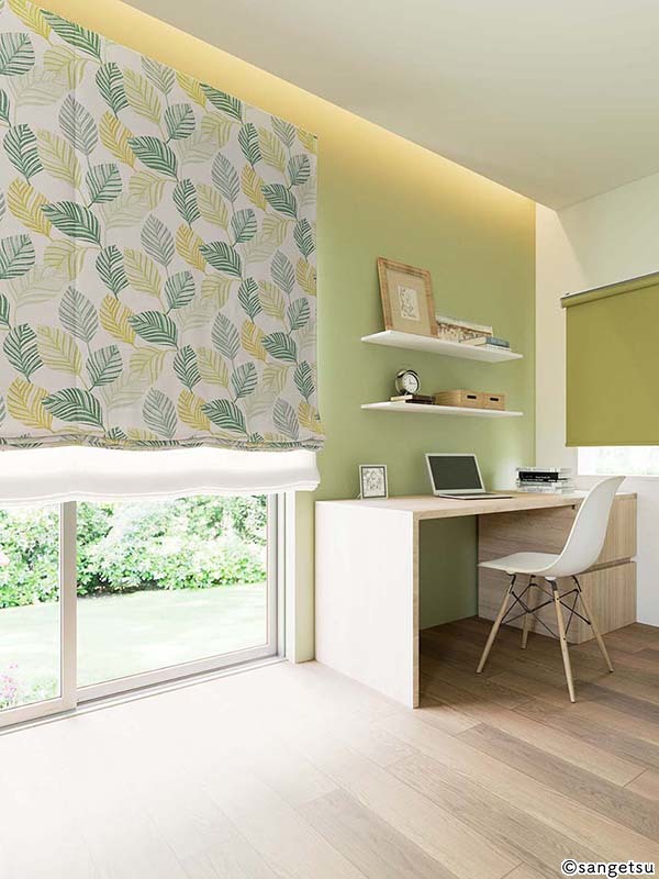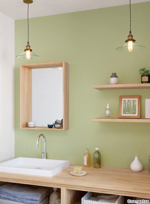 お部屋を爽やかな印象にしてくれるグリーン。撥水機能付きなので水まわりにもおすすめです。
